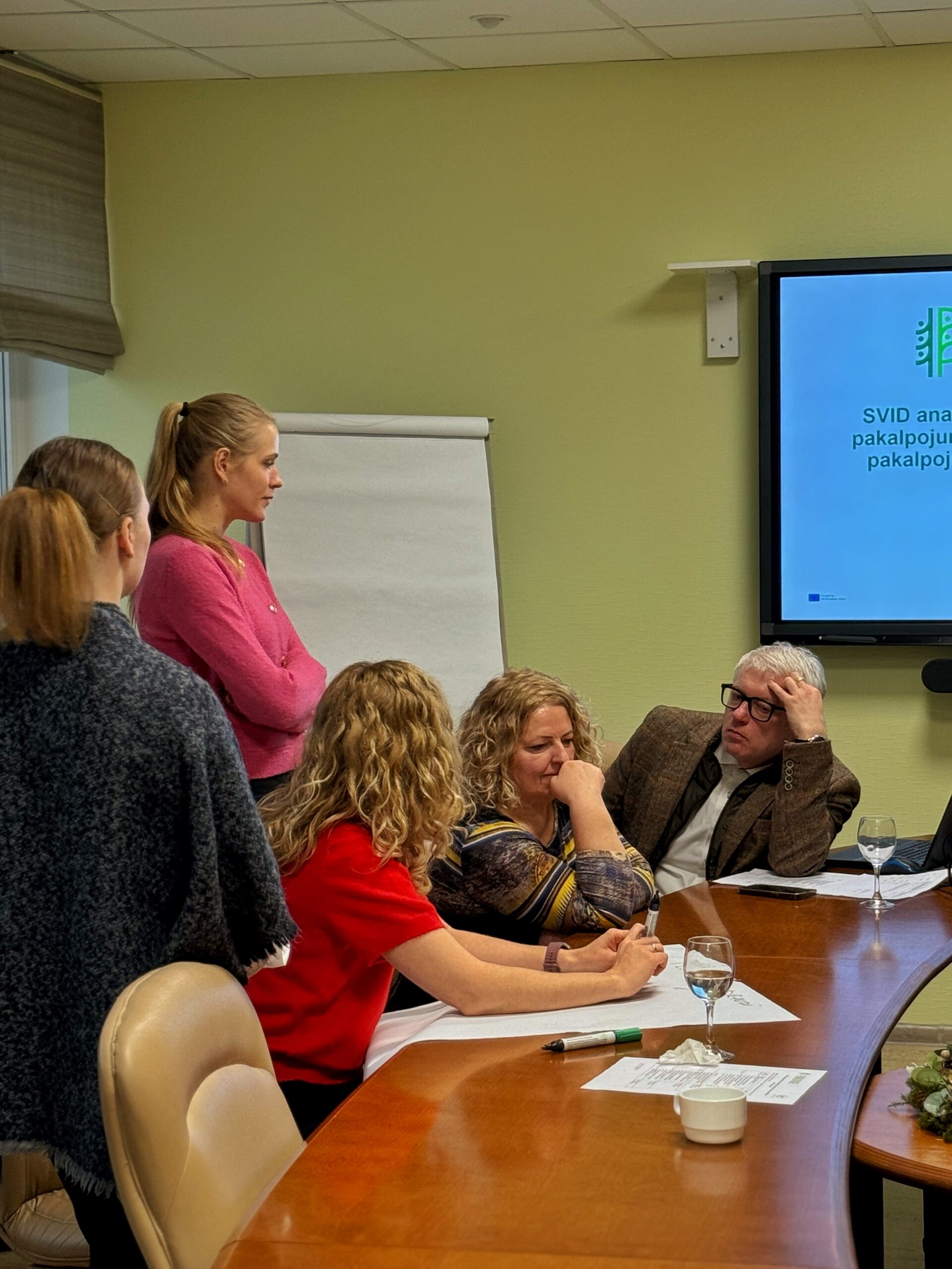 Sanāksmes noslēdzošajā darba sesijā grupa veica SVID analīzi (stiprās puses, vājās puses, iespējas un draudi), izvērtējot mežsaimniecības konsultāciju pakalpojumu sniegšanu nacionālā un reģionālā līmenī.