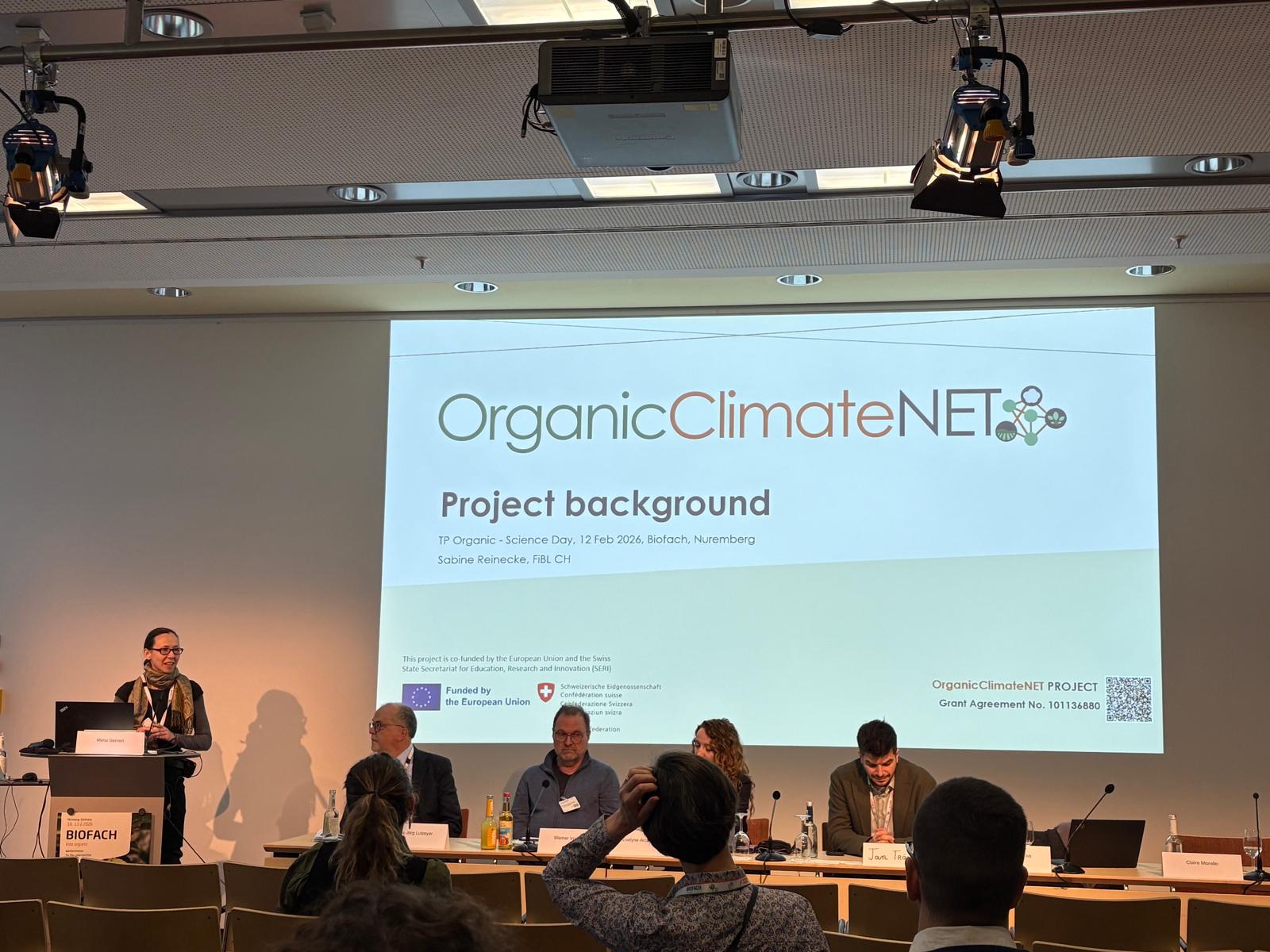 Visās šajās jomās panāktais progress bija redzami apkopots izstādē BIOFACH 2026, kur OrganicClimateNET piedalījās vienā no pasaules vadošajām bioloģiskās lauksaimniecības izstādēm. Semināra laikā, ko kopīgi organizēja OrganicAdviceNetwork kā daļu no TP Organic Zinātnes dienas, projekta partneri dalījās pieredzē par zināšanu apmaiņas iniciatīvām, uzsverot, ka savstarpēja mācīšanās paātrina praktisku risinājumu ieviešanu. Pēc tam dalībnieki pārrunāja veidus, kā stiprināt zināšanu pārnesi bioloģiskajā sektorā, un identificēja instrumentus, kas vislabāk atbalsta efektīvu konsultāciju darbu.
