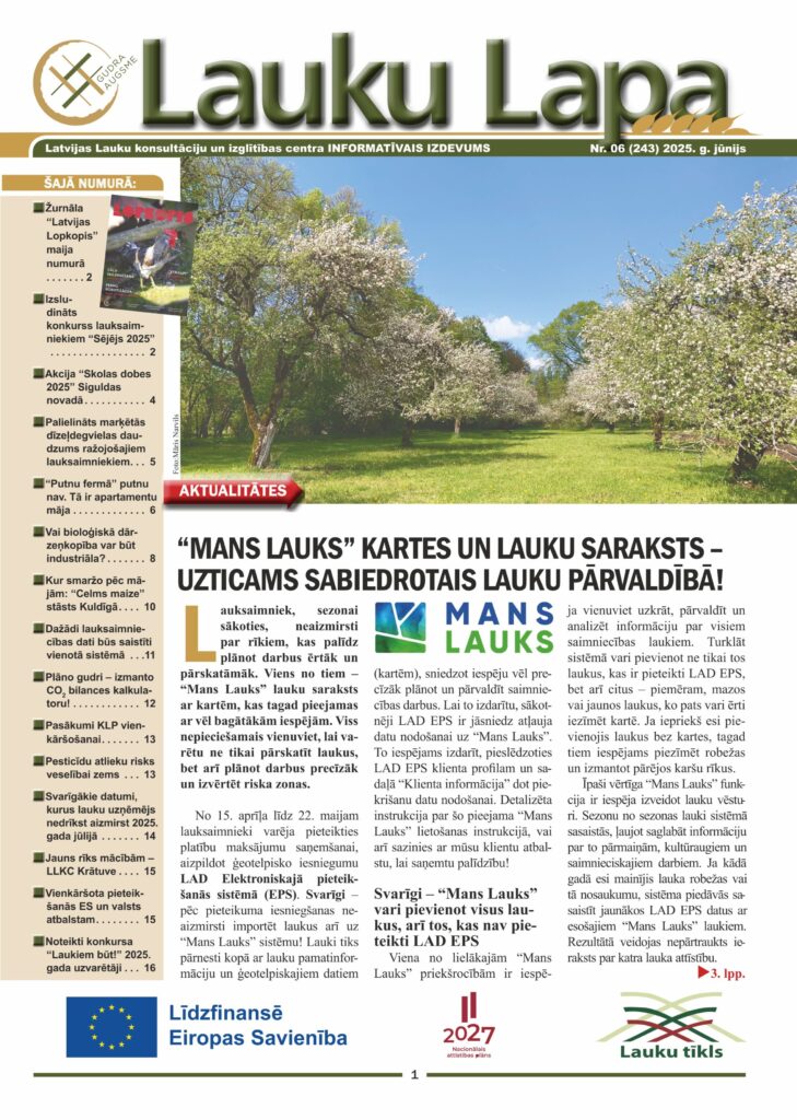 Kā vienmēr, tiek publicēts kalendārs ar svarīgākajiem datumiem, kurus lauku uzņēmējs nedrīkst aizmirst nākamajā mēnesī.