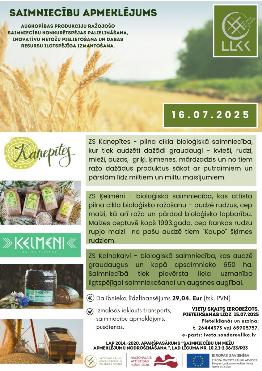 Izmaksās iekļauts transports, saimniecību apmeklējums, pusdienas.