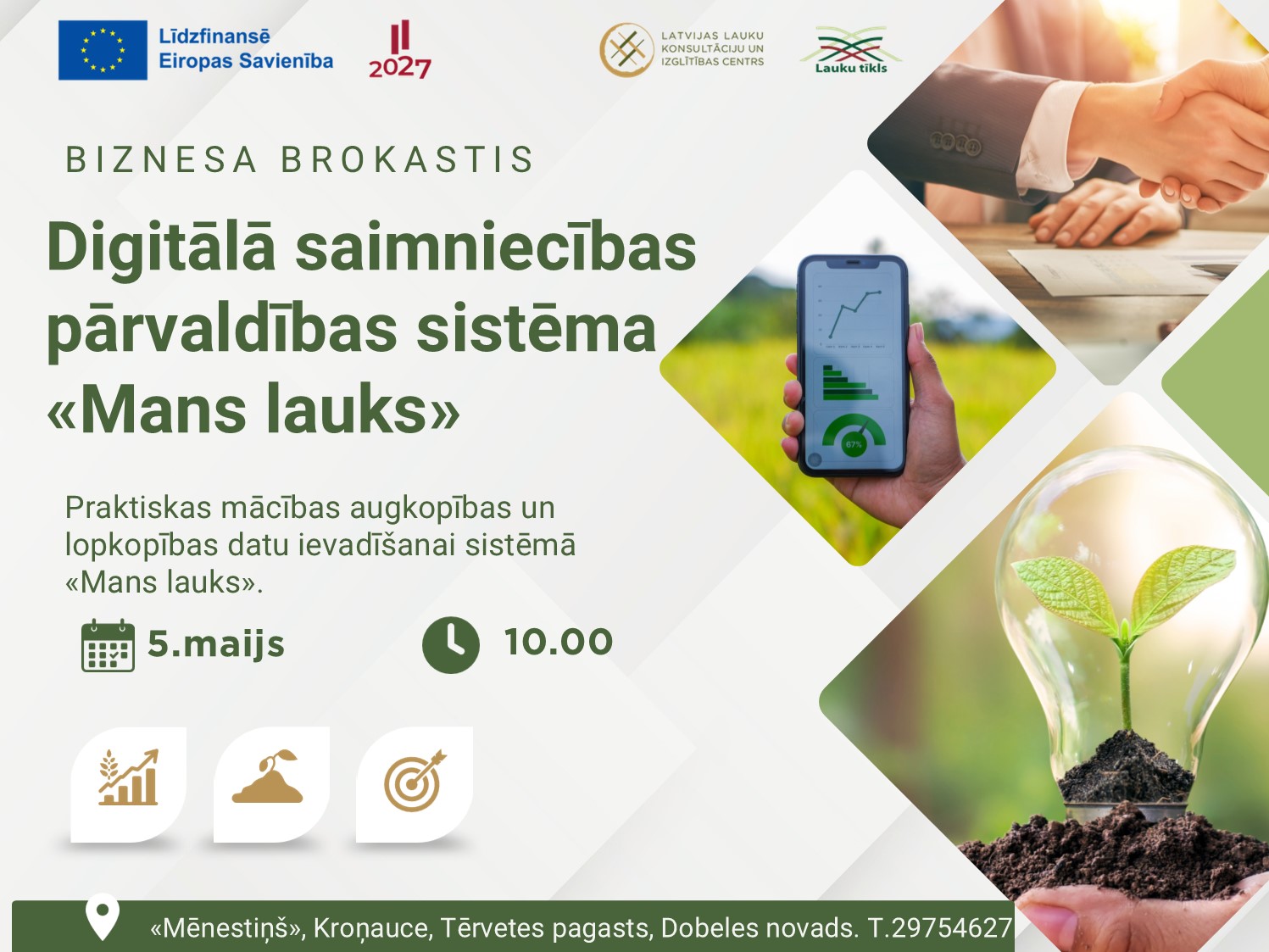LLKC Dobeles birojs aicina lauksaimniekus uz bezmaksas Biznesa brokastīm kafejnīcā “Mēnestiņš”, lai praktiski apgūtu LLKC izstrādāto lauku saimniecību pārvaldības sistēmu “Mans Lauks”.