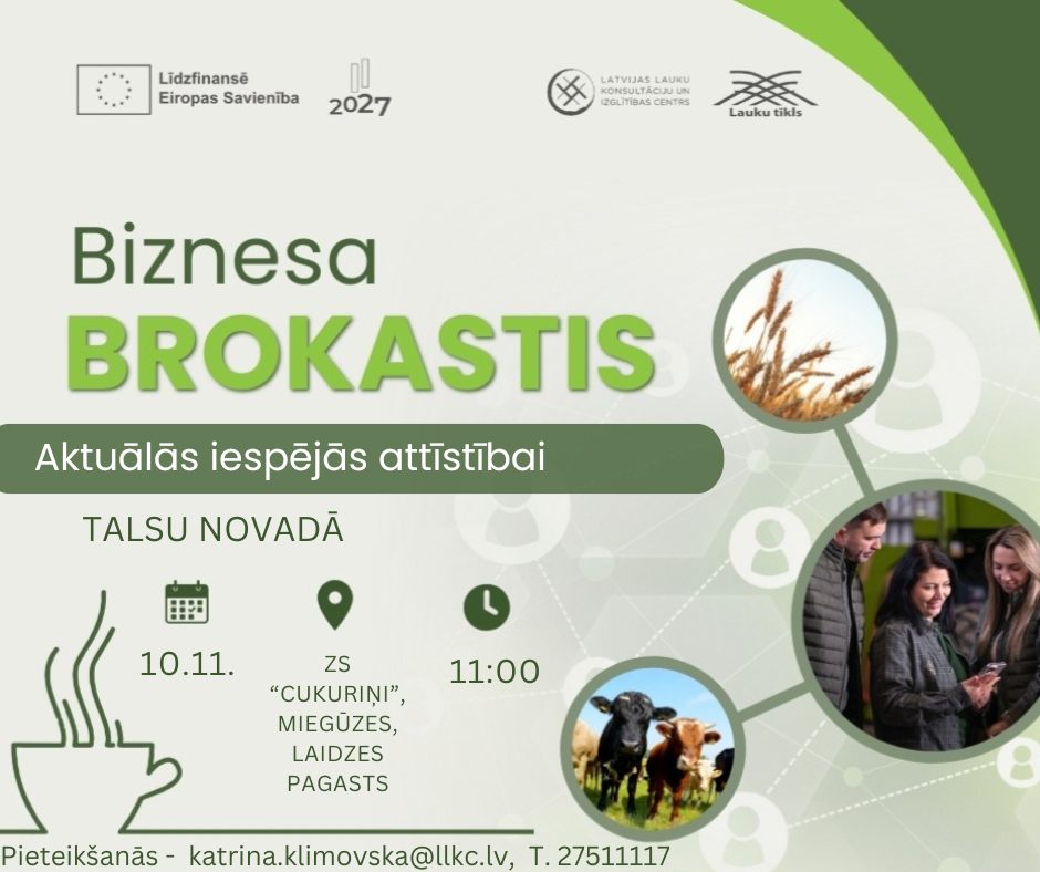 Latvijas Lauku konsultāciju un izglītības centra Talsu birojs aicina piedalīties Biznesa brokastīs.