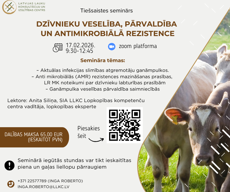 Aicinām piedalīties tiešsaistes seminārā “Dzīvnieku veselība, pārvaldība un antimikrobiālā rezistence”