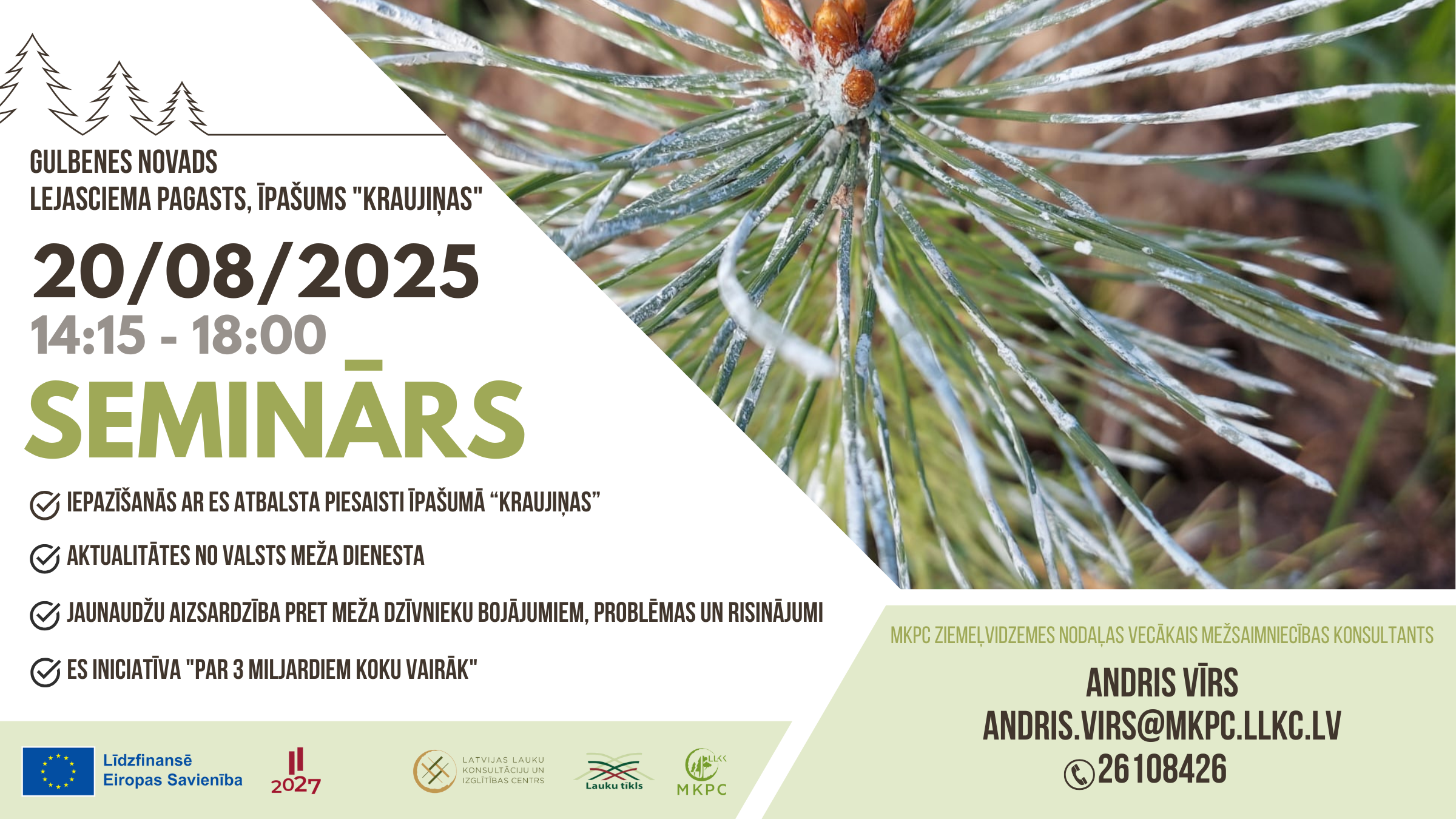 Aicinām uz informatīvo semināru “Iepazīšanās ar ES atbalsta piesaisti īpašumā “Kraujiņas”. Aktualitātes no Valsts meža dienesta. Jaunaudžu aizsardzība pret meža dzīvnieku bojājumiem, problēmas un risinājumi”.