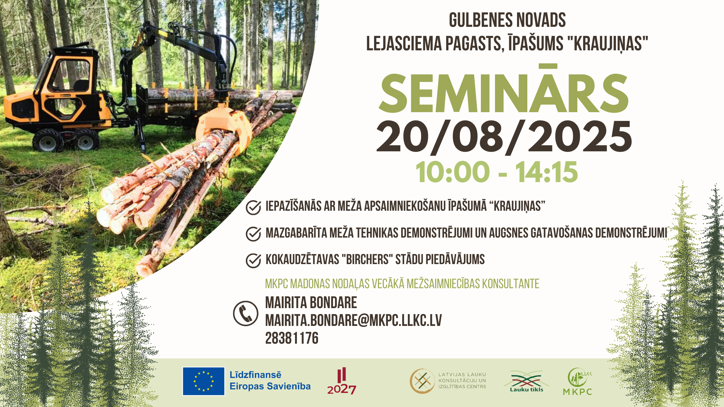 Lektori: Raimonds Mežaks (MDT “Pūpoli” pārvaldnieks), Uno Anže (meža īpašnieks, “Zelta čiekurs 2024” laureāts nominācijā “Par ilgtspējīgu meža apsaimniekošanu”).