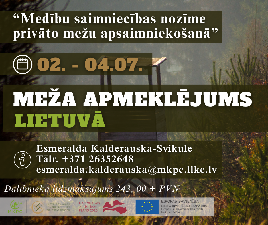 Piedalies izzinošā pieredzes braucienā uz Lietuvu, lai padziļināti iepazītu medību saimniecības lomu privāto mežu apsaimniekošanā. Dalībniekiem būs iespēja klātienē iepazīties ar Eiropas sumbra populācijas pārvaldību, savvaļas dzīvnieku ietekmi uz meža un lauksaimniecības zemēm, kā arī ar medību kultūru un ilgtspējīgas apsaimniekošanas praksi kaimiņvalstī.