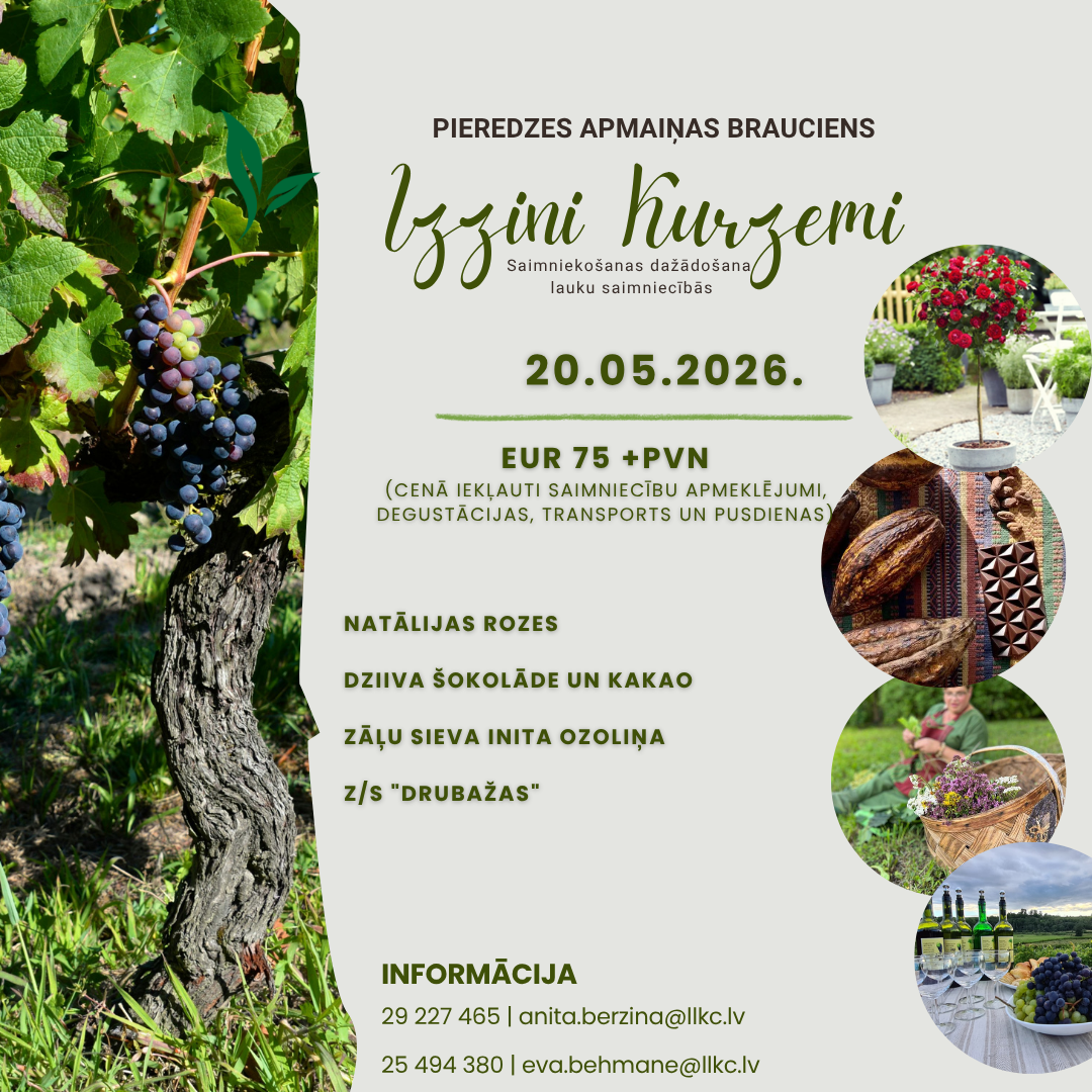 Cenā iekļauts transports, pusdienas, saimniecību apmeklējumi un degustācijas.