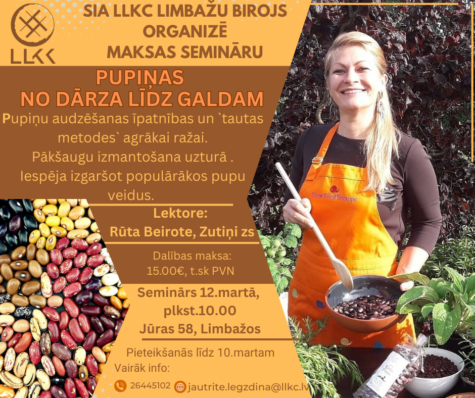 LLKC Limbažu konsultāciju birojs piedāvā klātienes maksas semināru “Pupiņas no dārza līdz galdam”.