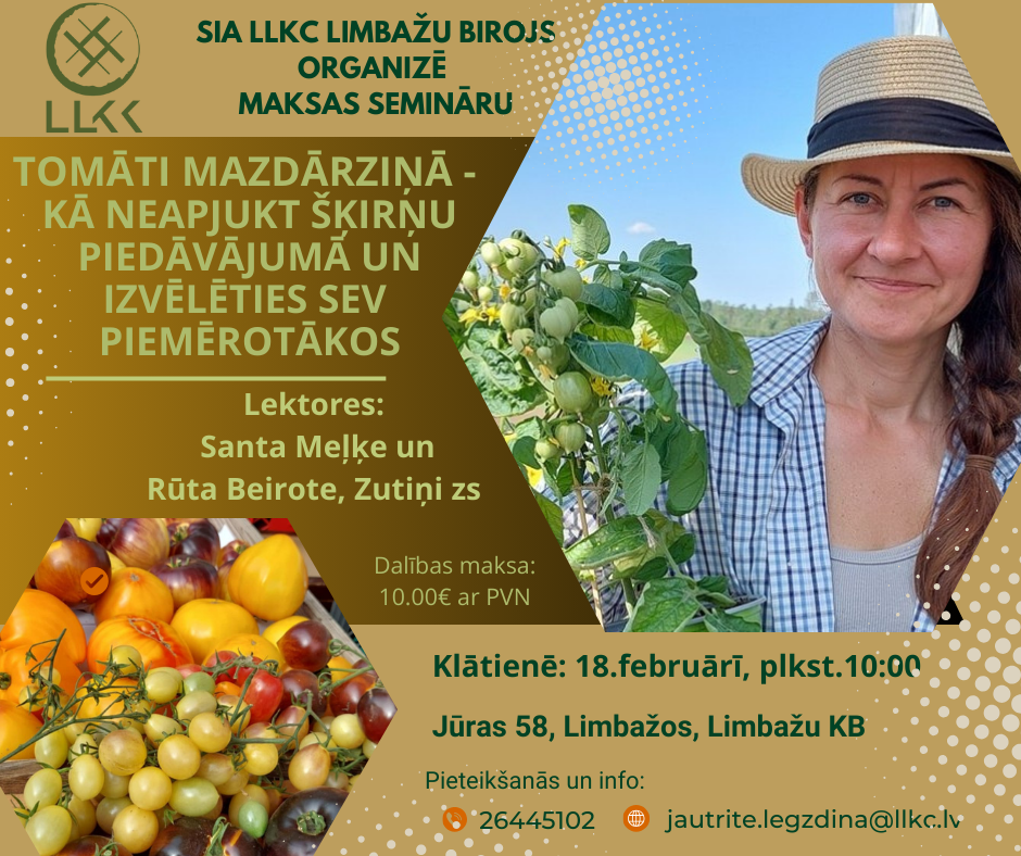 LLKC Limbažu konsultāciju birojs piedāvā klātienes maksas semināru “Tomāti mazdārziņā – kā neapjukt šķirņu piedāvājumā un izvēlēties sev piemērotākos”.