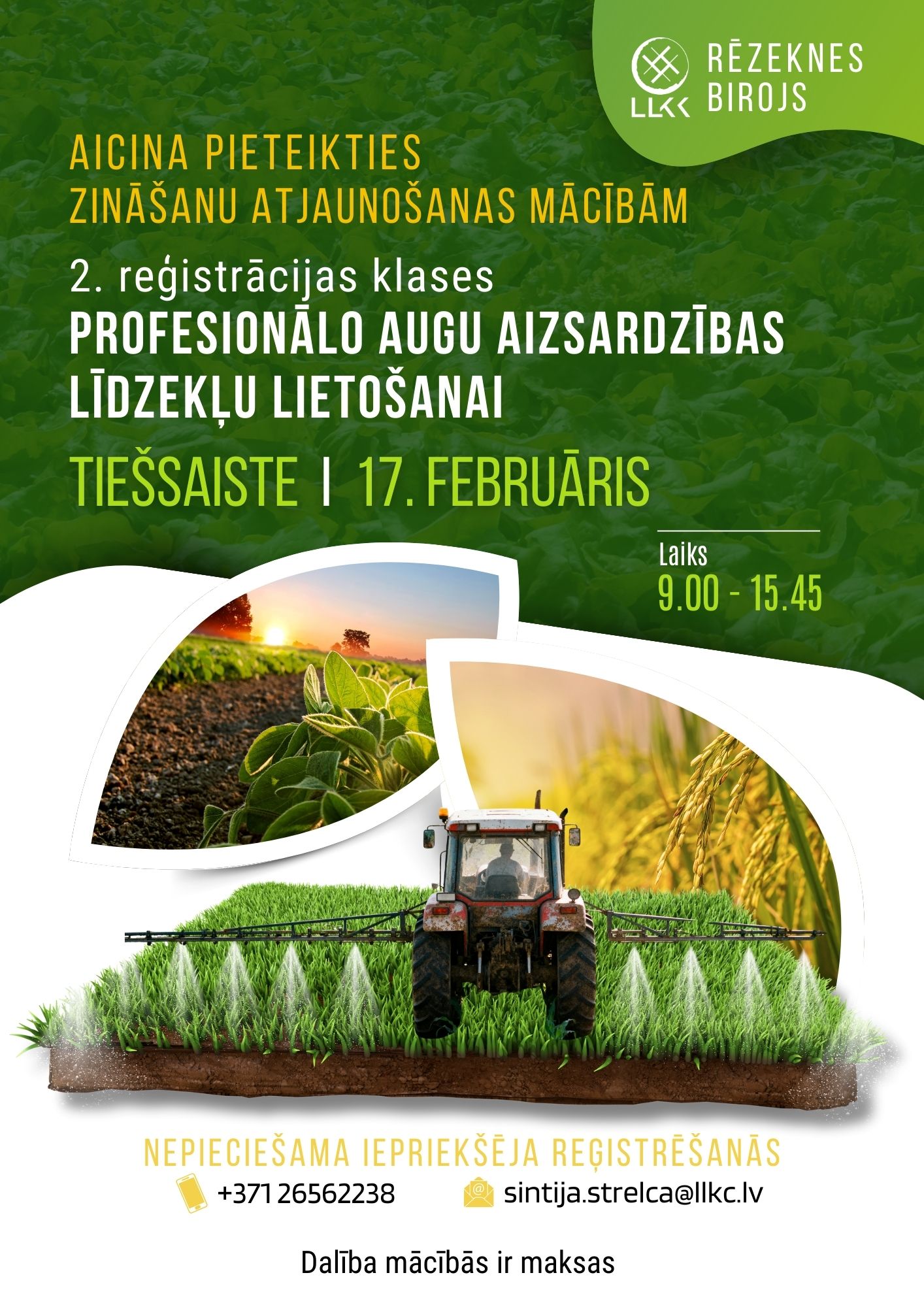 Šīs apmācības ir domātas profesionāļiem, kuru apliecība 2. reģistrācijas klases augu aizsardzības līdzekļu lietošanai tuvojas derīguma termiņa beigām vai ir jāatjauno, lai saglabātu tiesības legāli lietot šos līdzekļus lauksaimniecībā un augkopībā.