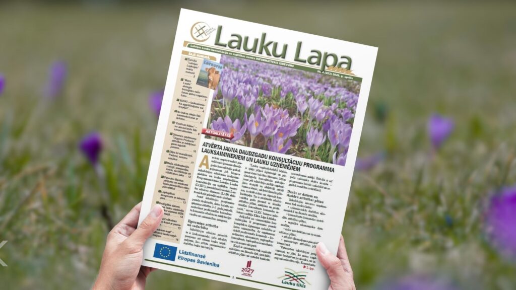 AugkopībaLauku attīstībaLopkopībaZivsaimniecība 10/04/2026 Iznācis “Lauku Lapas” aprīļa numurs Izdevuma “Lauku Lapa” aprīļa numurā atgādinām par jauno daudzgadu konsultāciju programmu lauksaimniekiem un lauku uzņēmējiem, kā arī atbalsta pasākumu...